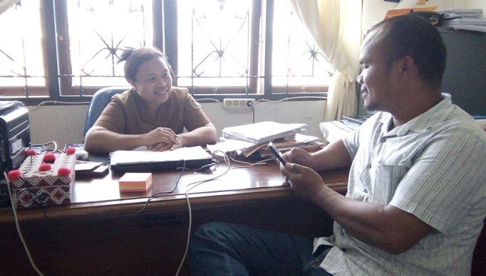 Kasi Perumahan, Dinas Perkim Humbahas, Dina Simamora tengah memberikan keterangan kepada wartawan. PALAPA POS/Andi Siregar