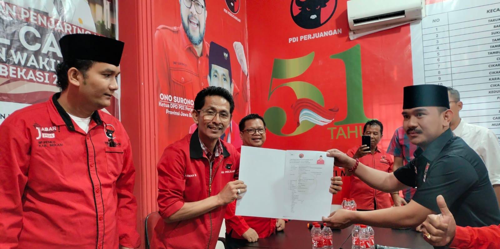 “Dengan izin pimpinan partai (DPC PDI Perjuangan Kabupaten Bekasi-red), keluarga dan dorongan dari para kader partai serta relawan. Saya siap mengabdikan diri untuk menjadi calon Bupati Bekasi. Jika nanti ditugaskan partai untuk jadi calon Bupati. Saya siap mengundurkan diri jadi Anggota DPRD,” ucapnya, Sabtu (20/4/2024).