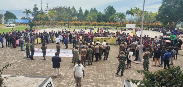 Hingga berita ini dikirimkan, aksi damai masih berlangsung di halaman Kantor Bupati Toba.