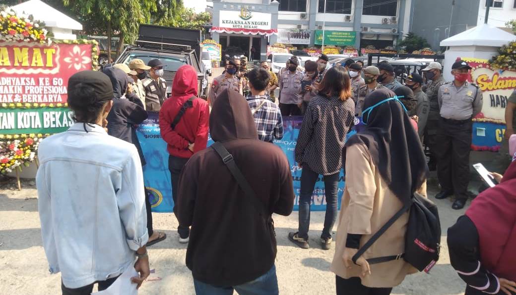 BEKASI - Kumpulan pemuda dan mahasiswa yang tergabung dalam Gerakan Rakyat Anti Korupsi (Grasi) kembali turun ke jalan dengan menggeruduk kantor Kejaksaan Negeri Kota Bekasi di jalan Jendral Sudirman, Harapan Mulya, Kota Bekasi, Kamis (23/7/2020).