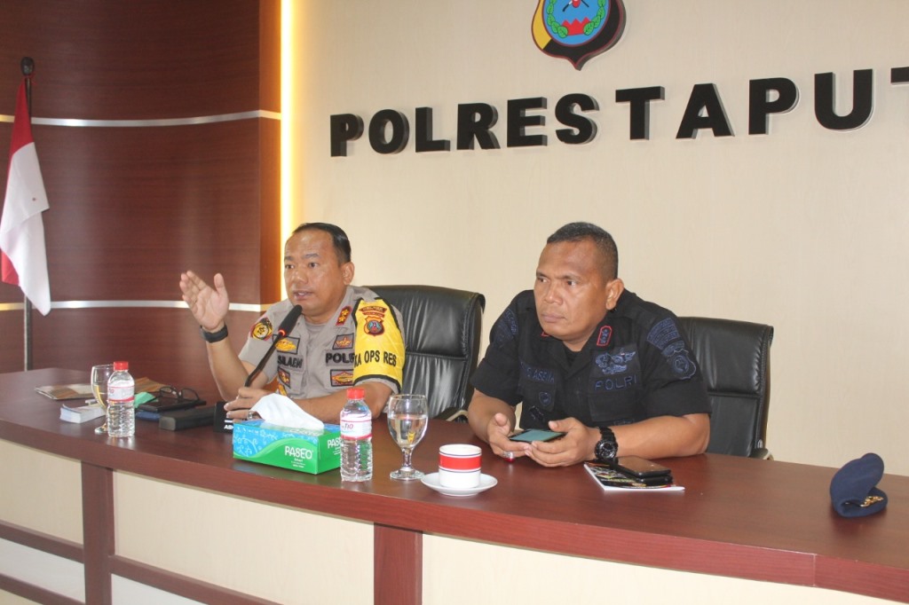 Kapolres Tapanuli Utara AKBP Horas M Silaen didampingi Kaden C Brimod Sipirok AKBP Bravo Asena dalam rapat finalisasi kegiatan di aula Tribrata Mapolres, Selasa (9/7/2019) mengatakan, persiapan dilokasi sudah dimatangkan.
