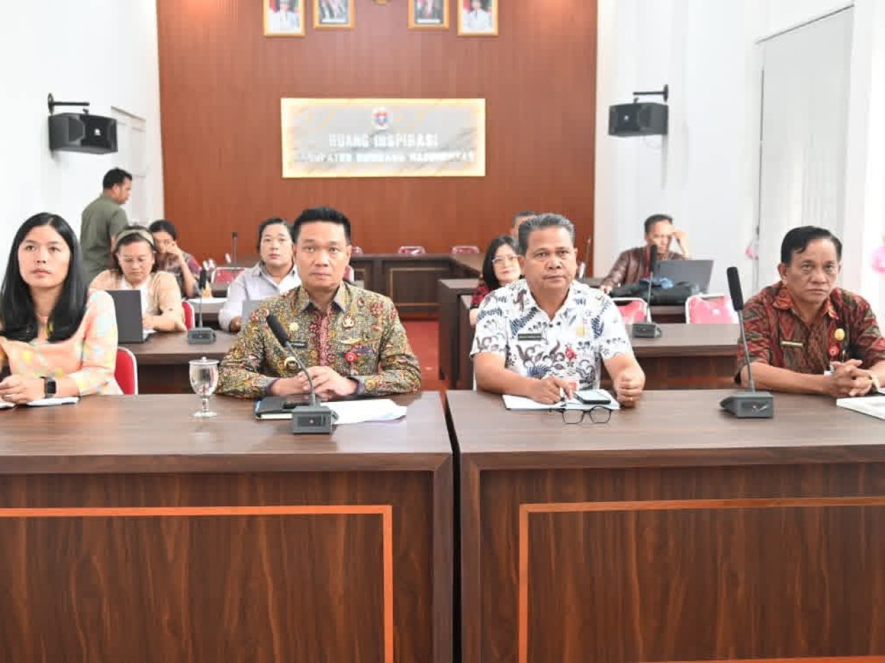HUMBAHAS - Bupati Humbang Hasundutan (Humbahas), Oloan Paniaran Nababan, bersama jajaran pimpinan Organisasi Perangkat Daerah (OPD) mengikuti sosialisasi nasional terkait piloting digitalisasi bantuan sosial. Kegiatan ini dilaksanakan secara daring melalui aplikasi Zoom Meeting dari Ruang Inspirasi Kantor Bupati Humbahas, Kamis (4/12/2025).