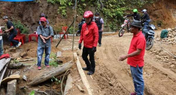 Salah satu Tokoh masyarakat mengakui salut dan terharu atas kedatangan Bupati memakai sepeda motor trail melihat kondisi jalan infrastruktur.