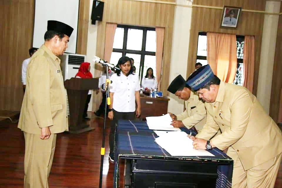 SIMALUNGUN - Bupati Simalungun diwakili Sekretaris Daerah Kabupaten Simalungun Gidion Purba melantik 19 orang untuk mengisi jabatan Pimpinan Tinggi Pratama hasil Job Fit (Uji Kesesuaian) yang dilaksakan pada 29 Mei 2019 lalu, pelantikan ini dilangsungkan di Pematangraya, Rabu (19/6/2919).
