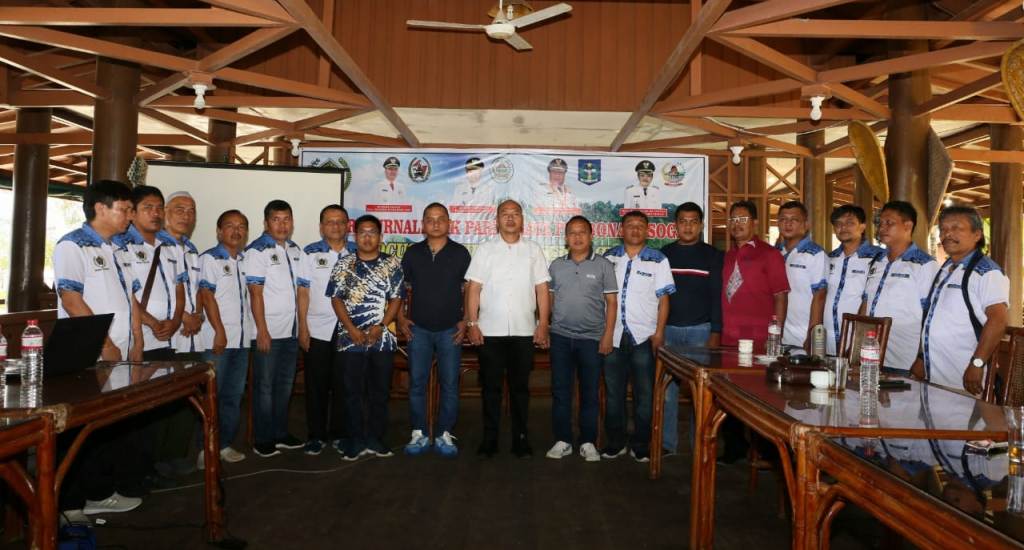 Pengurus PWI Bonapasogit diabadikan dengan Bupati Taput Nikson Nababan, Bupati Tapteng Bakhtiar Sibarani, Wabup Darwin Sitompul, pimpinan DPRD Sibolga/Tapteng dalam agenda Safari Jurnalistik Pariwisata. PALAPA POS/Alpon Situmorang