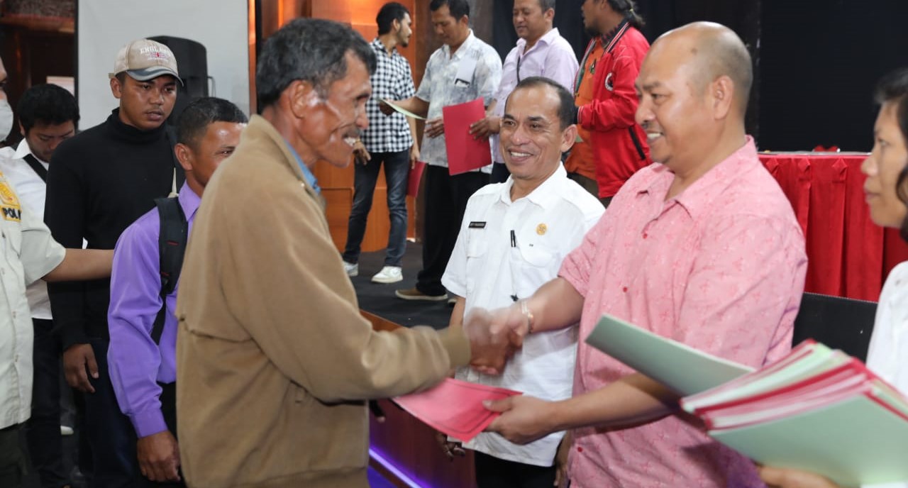 Pembagian Akte Notaris oleh Bupati Nikson Nababan kepada masing-masing anggota Kelompak Tani, Rabu (21/12/2022). PALAPA POS/ Hengki