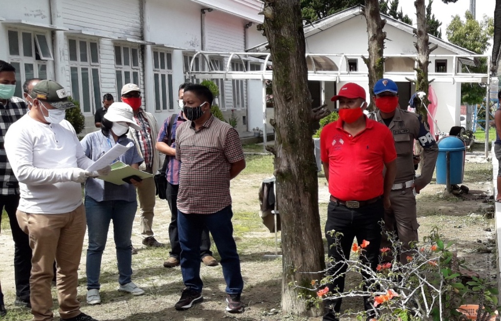 Bupati Taput Nikson Nababan beberapa waktu lalu saat melihat kondisi tenaga medis menjalani isolasi di kompleks RSUD Tarutung. PALAPAPOS/Alpon Situmorang