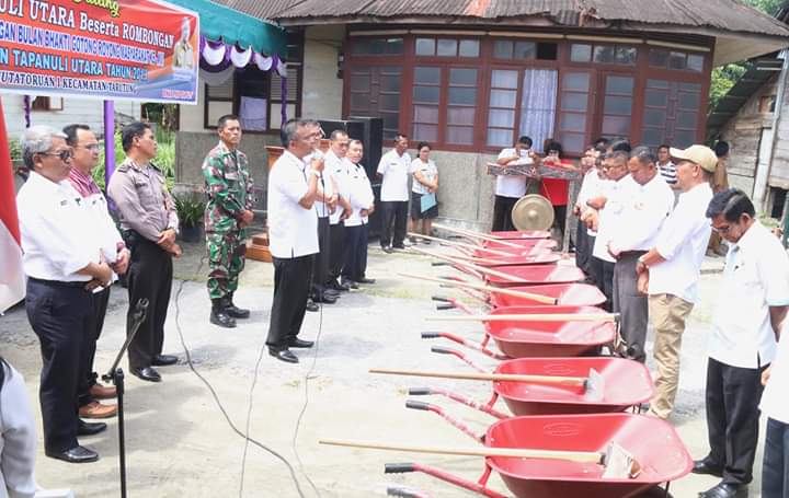 TARUTUNG - Dalam Pencanangan Bulan Bakti Gotong Royong Masyarakat (BBGRM) XVI Kabupaten Tapanui Utara tahun 2019 yang dipusatkan di Desa Hutatoruan I Tarutung, Rabu (24/7/2019).