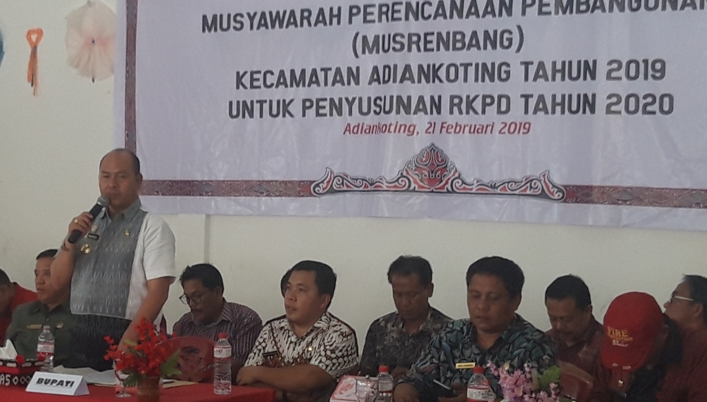 "Musrenbang di Adiankoting ini merupakan musrenbang Kecamatan keenam yang telah saya ikuti. Hari ini saya ingin langsung dengar apa yang menjadi prioritas pembangunan desa-desa di Adiankoting. Ini tidak main-main lagi. Apa yang sudah diputuskan hari ini, itu yang akan dikerjakan tahun depan. Asalkan, jangan lari dari visi -misi," kata Nikson Nababan dalam arahannya sa Musrenbang kecamatan Adiankoting yang dilaksanakan di Sopo Godang HKB Adiankoting, Kamis (21/2/2019).