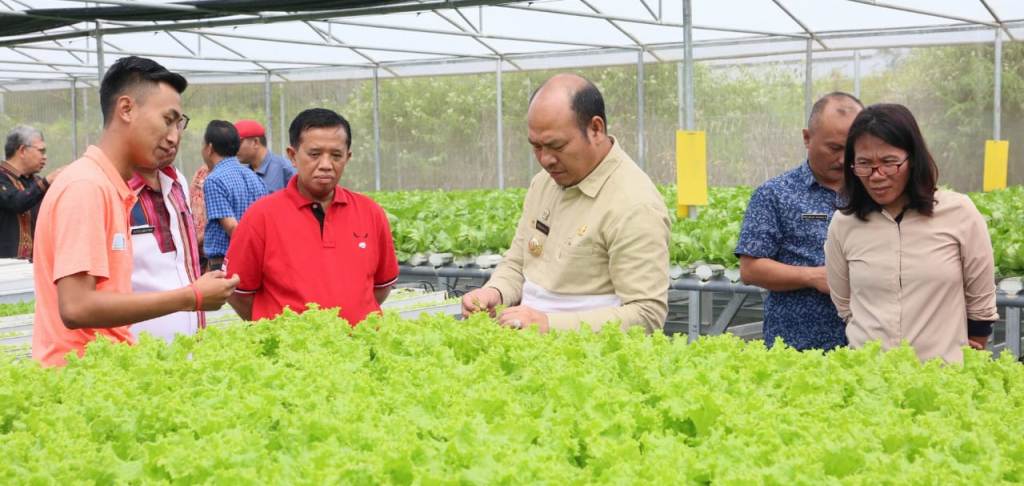 TAPANULI UTARA – Bupati Tapanuli Utara Nikson Nababan meminta sayur mayur tanpa pestisida dikembangkan saat meninjau lahan pertanian Hidroponik sayur mayur tanpa pestisida di Desa Pohan Tonga, Siborongborong, Tapanuli Utara, Kamis (6/2/2020).