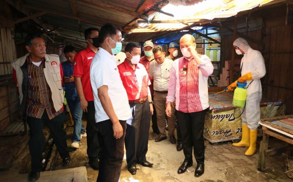 Bupati Taput Pantau Penyemprotan Disinfektan di Pasar Tarutung