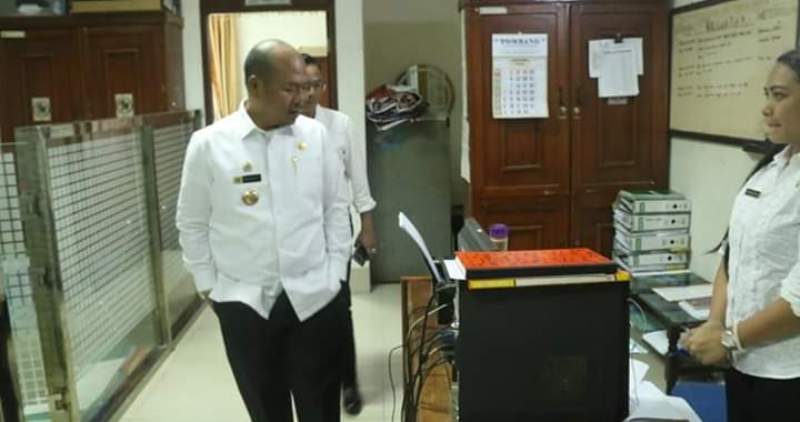 Bupati Taput Nikson Nababan saat melakukan sidak di ruangan kantor Bupati Taput. PALAPA POS/Hengki Tobing