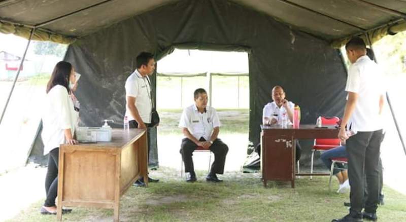 Bupati Taput Nikson Nababan saat meninjau tenda yang disiapkan untuk penanganan Covid -19 di lapangan Tangsi, Tarutung, Rabu (18/3/2020). PALAPAPOS/Hengki Tobing