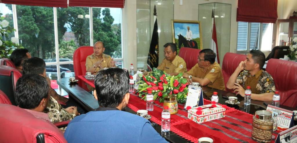 Bupati Taput Nikson Nababan saat menerima audiensi dari Sekolah Tinggi Akuntansi dan Manajemen Indonesia (STAMI) dan Politeknik Bisnis Indonesia (PBI) Pematangsiantar. PALAPAPOS/Hengki Tobing