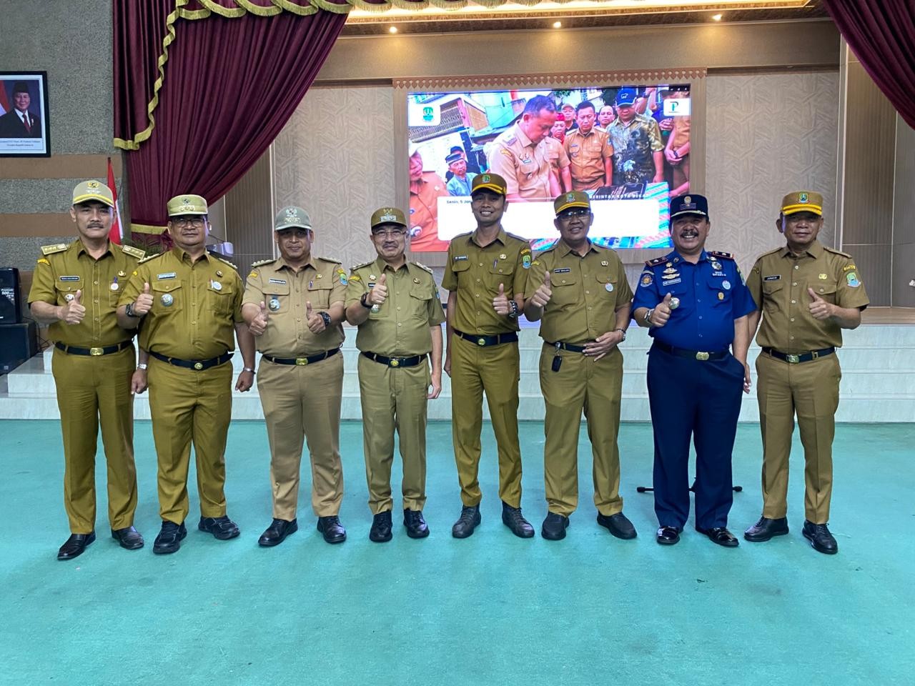 DBMSDA bersama Dinas Pemadam Kebakaran dan Penyelamatan (Disdamkarmat), disusul Badan Pengelolaan Keuangan dan Aset Daerah (BPKAD) saat menerima penghargaan. PALAPA POS/Yudha.