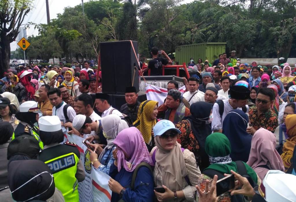 Demo DPRD Kota Bekasi, Ratusan Guru dan TKK Tuntut RAPBD 2020 Disahkan