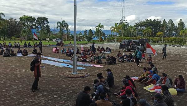 TOBA - Ratusan demonstran datangi kantor Bupati Toba serukan tutup PT Toba Pulp Lestari (TPL) Tbk, Selasa (29/6/2021), dan mereka menyatakan, aksi tersebut sebagai aksi perjuangan rakyat, dan untuk kesejahteraan rakyat.