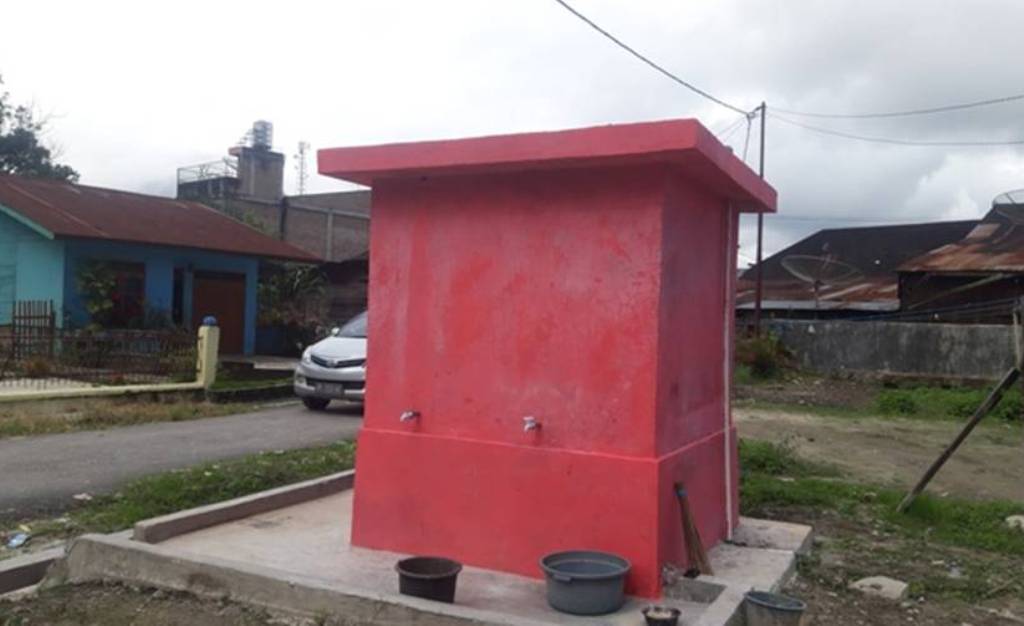 Salah satu bak penampungan sumur bor yang dibangun Pemerintah Desa Harianja melalui Dana Desa tahun 2019. PALAPA POS/Hengki Tobing