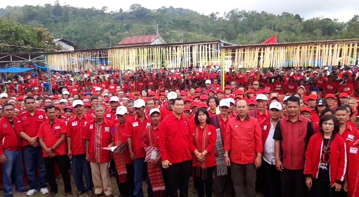 etua PDI Perjuangan Taput Nikson Nababan dan ribuan warga masyarakat Adian Koting deklarasi dukung Jokowi-Ma'ruf. PALAPAPOS/Hengki Tobing