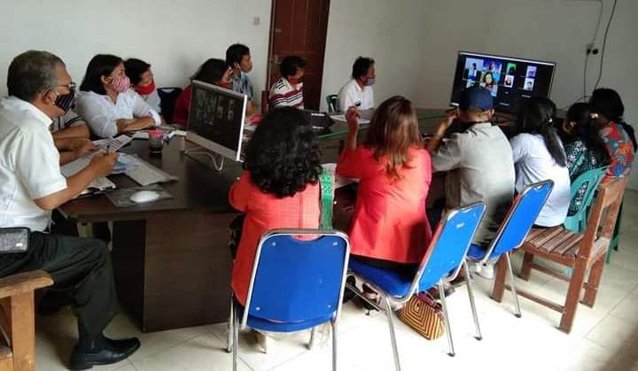 Kepala Dinas Koperasi Taput saat memfasilitasi pelaku UMKM daerah itu melakukan zoom Meeting dengan Pertamina beberapa waktu lalu. PALAPAPOS/Hengki Tobing