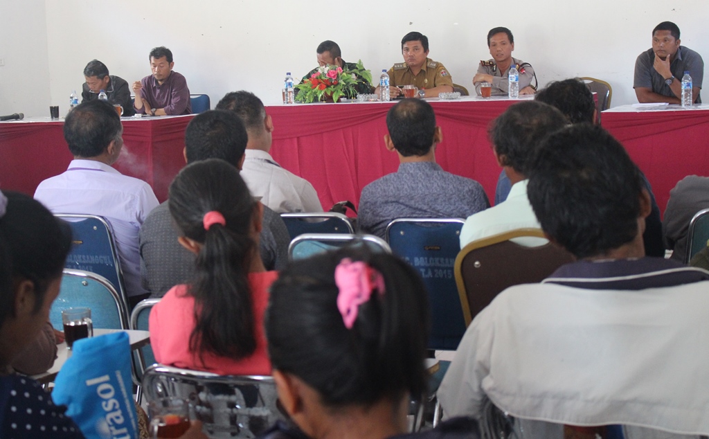 Camat Dolok Sanggul, Pardomuan Manullang saat membuka acara upaya mediasi masyarakat Desa Sosorgonting dengan pihak PT BEL di Aula Kantor Camat Dolok Sanggul. PALAPAPOS/Andi Siregar