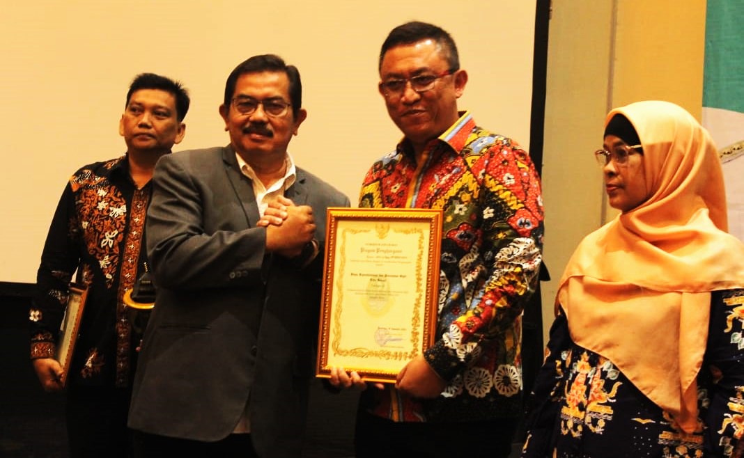 Kepala Dinas Kependudukan dan pencatatan Sipil (Disdukcapil) Kota Bekasi, Taufiq Rachmat Hidayat saat menerima penghargaan, PALAPA POS/ Yudha