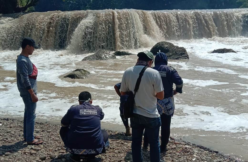 Diketahui, sejumlah tim DLH Kota Bekasi mengambil sample air Kali Bekasi. Hal itu dilakukan guna menemukan jenis limbah yang dibuang ke aliran Kali Bekasi sampai mengeluarkan buih dan bau yang tak sedap. (lam)