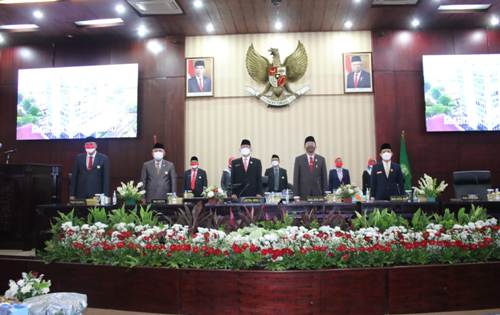 Berlokasi di ruang rapat paripurna DPRD Kota Bekasi, Senin, (16/8/2021) kegiatan berlangsung khidmat dan seluruh hadirin mendengarkan dengan seksama seluruh rangkaian acara yang disiarkan secara langsung melalui Video Conference dari Gedung DPR RI Jakarta.