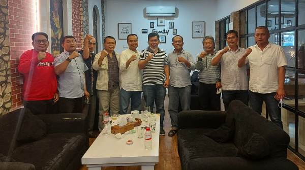 Didampingi Calon Ketua Dewan Kehormatan PWI Sumut M. Syahrir, rombongan diskusi di Bhinneka Cafe Resto Sipoholon.