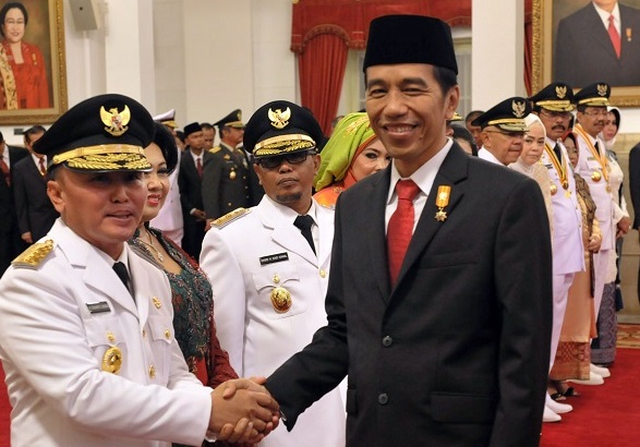 Gubernur Kalimantan Tengah, Sugianto Sabran saat berjabat tangan dengan Presiden Joko Widodo. PALAPA POS/Istimewa