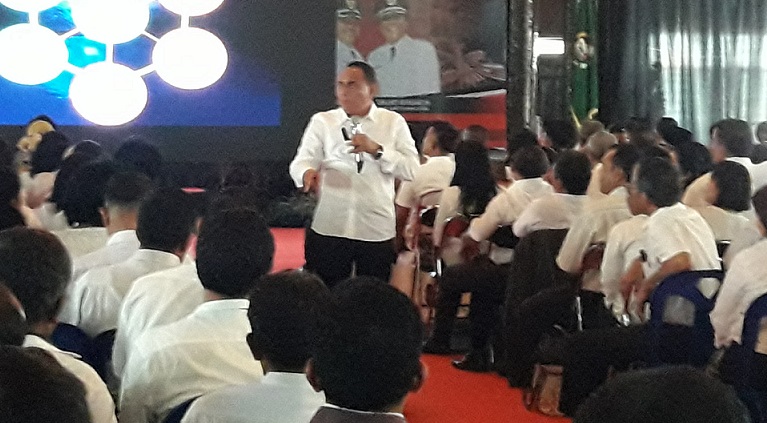 TAPUT - Dalam kunjungan kerjanya di Kabupaten Tapanuli Utara, Rabu (12/6/2019) dipusatkan di Sopo Partukkoan. Gubernur Sumatera Utara Edy Rahmayadi menegaskan akan memulai program kerjanya menuntaskan masalah di 33 Kabupaten/kota menggunakan metode Bottom Up.