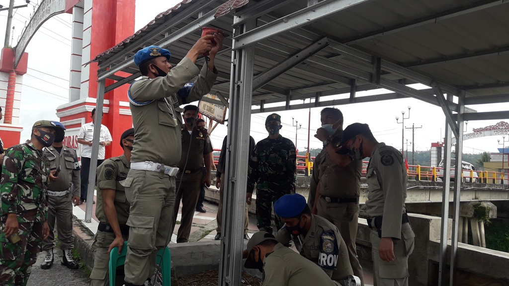 TAPANULI UTARA - Usai melakukan pertemuan dengan pedagang di kawasan tanggul Aek Sigeaon kemarin, tim penertiban kawasan tanggul terdiri dari Satpol PP, TNI, Polri didampingi Camat Tarutung Reinhard Lumbantobing, Lurah Hutatoruan X ZK Lumbantobing serta Lingkungan Hidup (Lindup) turun menyisir lapak pedagang, Rabu (16/9/2020).