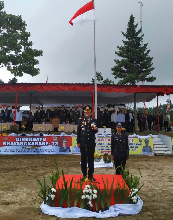 Kapolres Humbahas AKBP MHD R Dayan bertindak sebagai Irup dalam upacara HUT Bhayangkara ke-73. PALAPAPOS/Andi Siregar