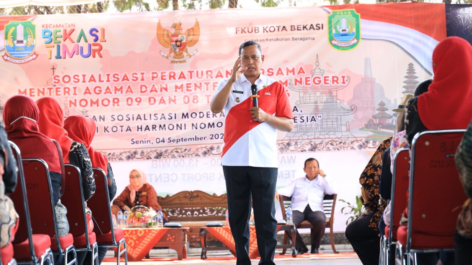 Wali Kota Bekasi, Tri Adhianto bersama Ketua FKUB, Abdul Manan, hadir langsung dalam sosialisasi mengusung tema “Dengan Sosialisasi Moderasi Beragama, Kota Capai Harmoni Nomor 1 di Indonesia“ akan rutin digelar di wilayah kecamatan lainnya di Kota Bekasi.
