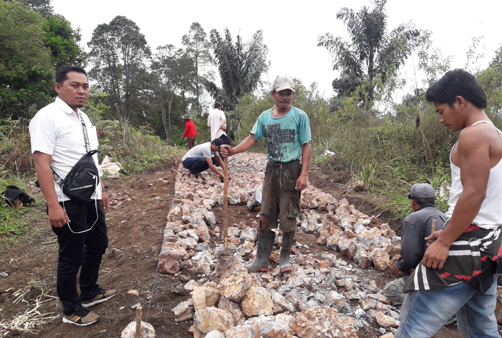 Kades Jambur Nauli Adi Hutabarat saat memonitoring pelaksanaan pembangunan JUT Hasang yang ditingkatkan menjadi perkerasan. PALAPA POS/Alpon Situmorang