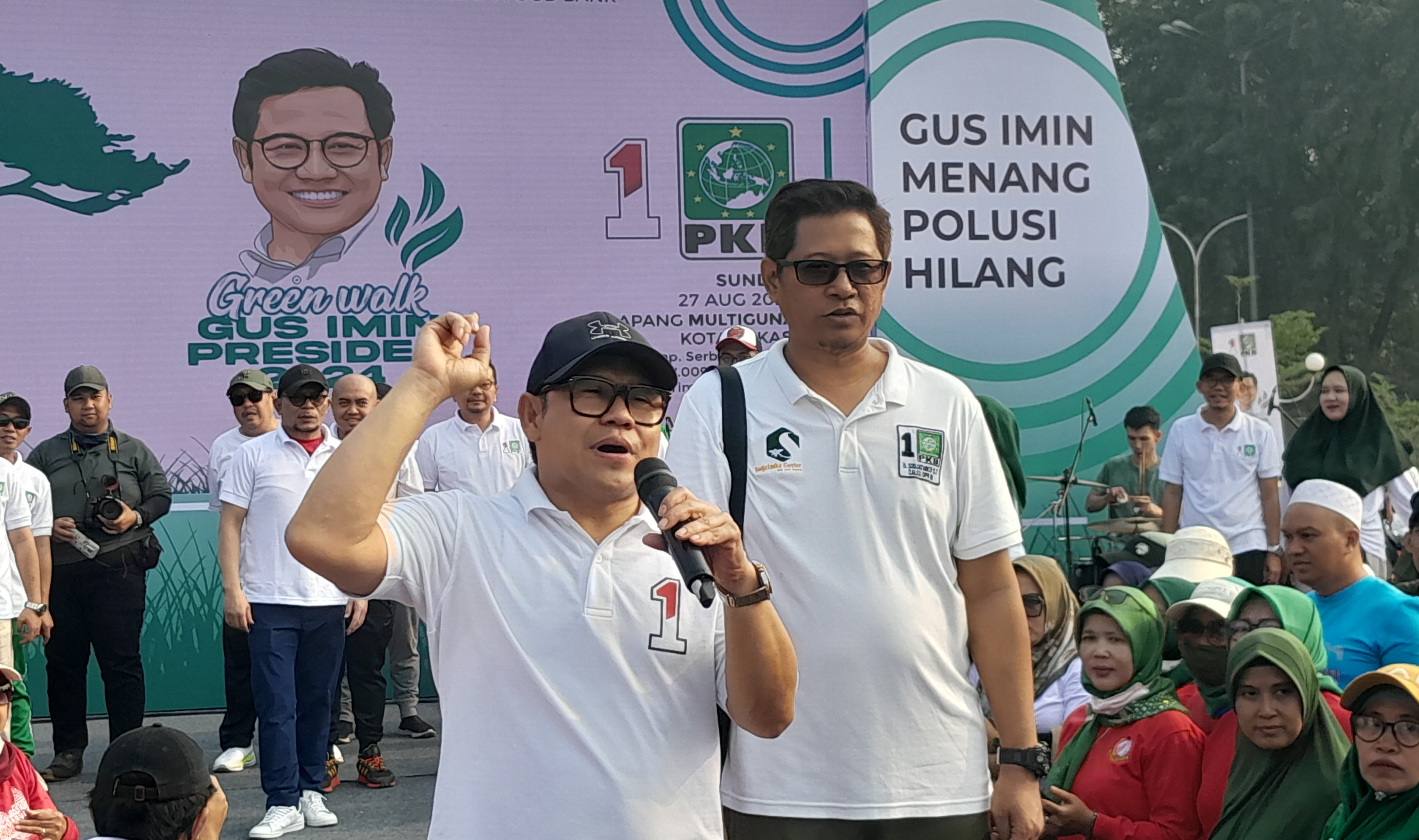 Ketua Umum PKB, Muhaimin Iskandar saat Green Walk di lapangan serbaguna, Kota Bekasi, Minggu (27/8/2023). PALAPA POS/ Yudha
