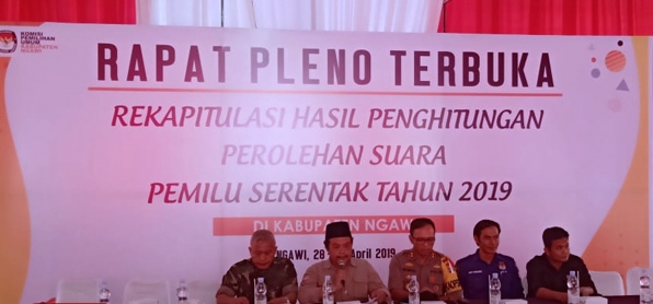 Rapat pleno rekapitulasi hasil penghitungan suara Pilpres 2019 tingkat Kabupaten Ngawi, Jawa Timur. PALAPAPOS/Istimewa