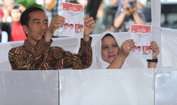 Joko Widodo (Jokowi) dan Istri Iriana saat menggunakan hak pilihnya pada Pilpres 2019. PALAPA POS/Istimewa