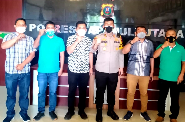 Pengurus PWI Bona Pasogit usai audiensi diabadikan dengan Kapolres Taput AKBP. Ronald Fredy Christian Sipayung. Rabu (8/9/2021). PALAPA POS/ Alpon Situmorang