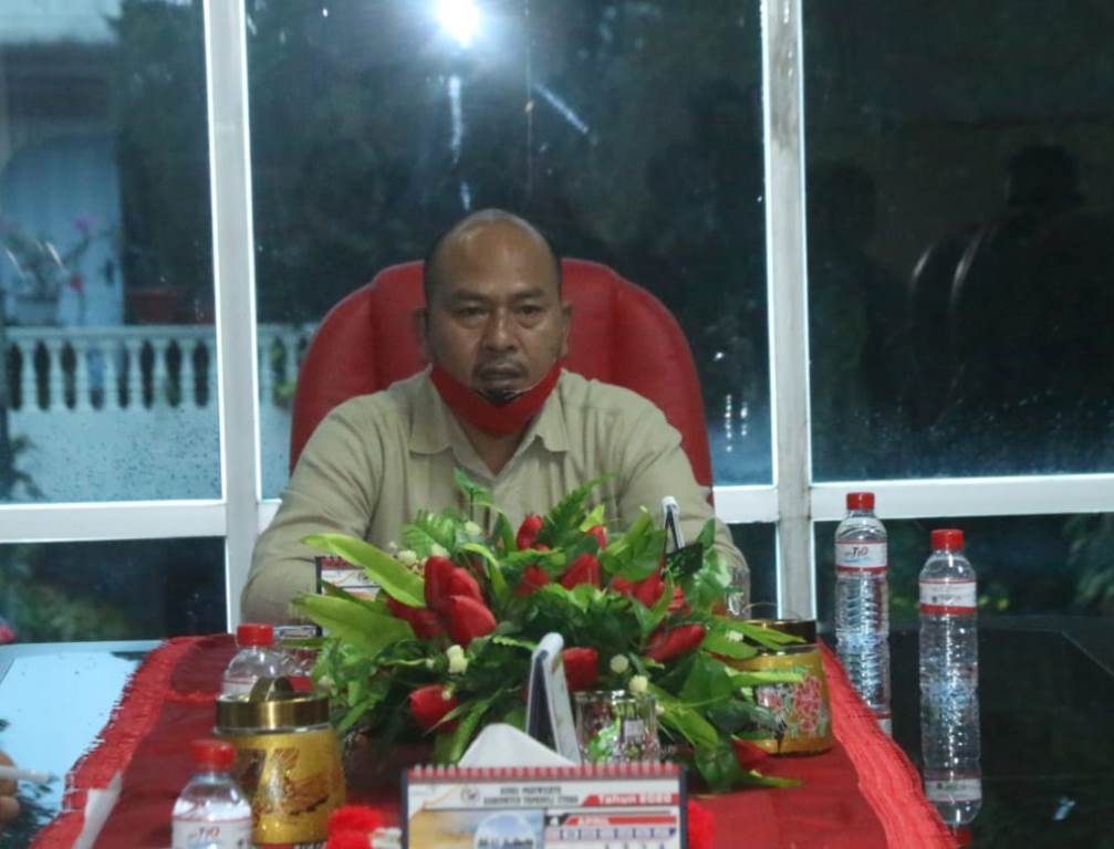 Bupati Taput Nikson Nababan saat memimpin rapat percepatan penanganan Covid 19. PALAPAPOS/ Hengki Tobing