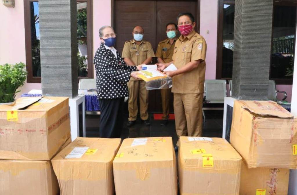 Adapun bantuan diterima terdiri dari 100 APD berupa baju, 100 rapid test dan 70 glasses (kacamata anti virus).