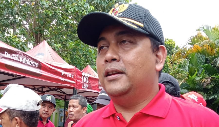 Lurah Harapan Jaya, Mohamad Soleh di lokasi kegiatan senam Sicitad dalam rangka Hari Ulang Tahun Kota Bekasi ke 26 tahun 2023 di Kelurahan Harapan Jaya, Sabtu (4/3/2023). PALAPA POS/ Alfian