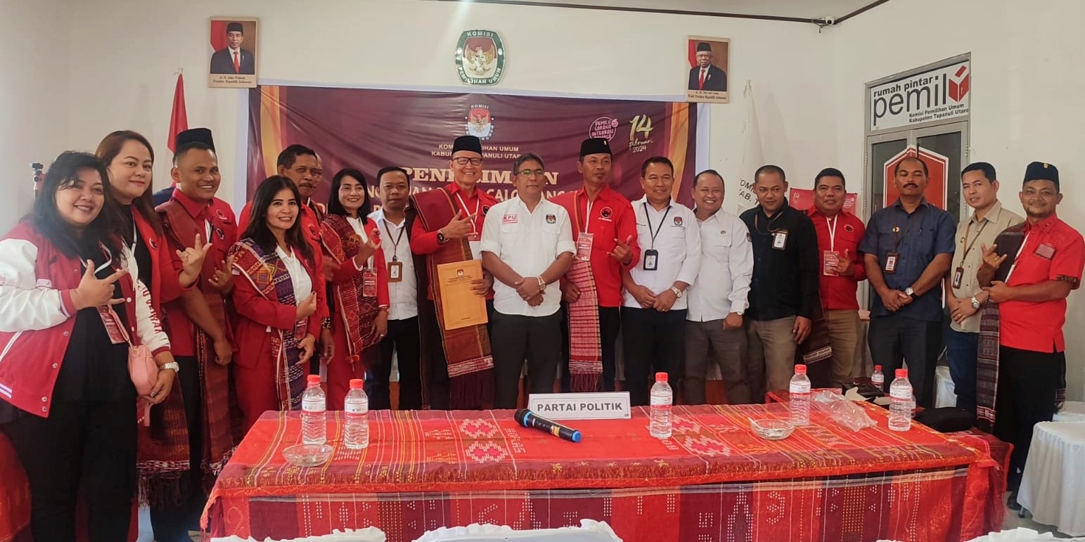 TAPANULI UTARA – PDI Perjuangan partai politik pertama di Kabupaten Tapanuli Utara mendaftarkan Bakal Calon Legislatif (Bacaleg) ke Komisi Pemilihan Umum (KPU), kelengkapan dokumen persyaratan pencalonan 35 Bacaleg dari Lima Daerah Pemilihan (Dapil) baik melalui Silon maupun secara manual yang diterima Komisioner KPU.
