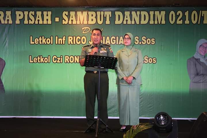 TAPANULI UTARA - Komando Distrik Militer 0210/TU melaksanakan pisah sambut bagi pejabat lama dan baru Dandim 0210/TU dari pejabat lama Letkol Inf Rico Siagian kepada pejabat baru Letkol Czi Roni Agus Widodo, yang digelar di Sopo Partungkoan-Tarutung, Selasa (27/8/2019) malam.