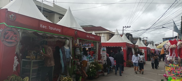 Situasi pameran yang dibangun dalam rangka perayaan Hari Jadi Kabupaten Tapanuli Utara ke -77 tahun 2022, Minggu (2/10/2022).