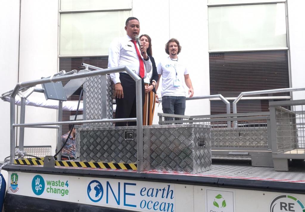 BEKASI - Kota Bekasi mendapat hibah kapal pembersih sungai ramah lingkungan hidup dan hemat energy dari Waste for Change, One earth One ocean, Reset Plastic, Recycle, Jerman.