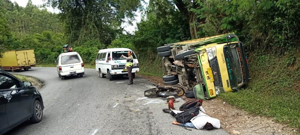 Menurut Kanit Lakalantas Polsek Parapat, Ipda Hendri Koto didampingi Brigadir Kristop Sinaga dan Briptu Anwar Ginting di TKP menyampaikan, bahwa pengendara sepeda motor Sahrun Parsaora Barimbing (15 thn), alamat Porsea Narumonda meninggal dunia di TKP dan rekan yang diboncengnya Rofbi Alexa Barimbing (15 thn), alamat Porsea Narumonda mengalani kritis karena luka berat yang dialaminya. "Sebab kita lihat di TKP ban Truk Colt Disel itu sepertinya sempat menggilas korban secara bersamaan," ujar Ipda Hendri.