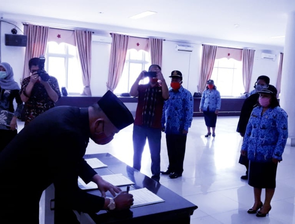 Pelantikan menerapkan Social dan Physical Distancing, Kasek dilantik menggunakan masker. Saat pelantikan Bupati Taput didampingi Organisasi Perangkat Daerah (OPD).