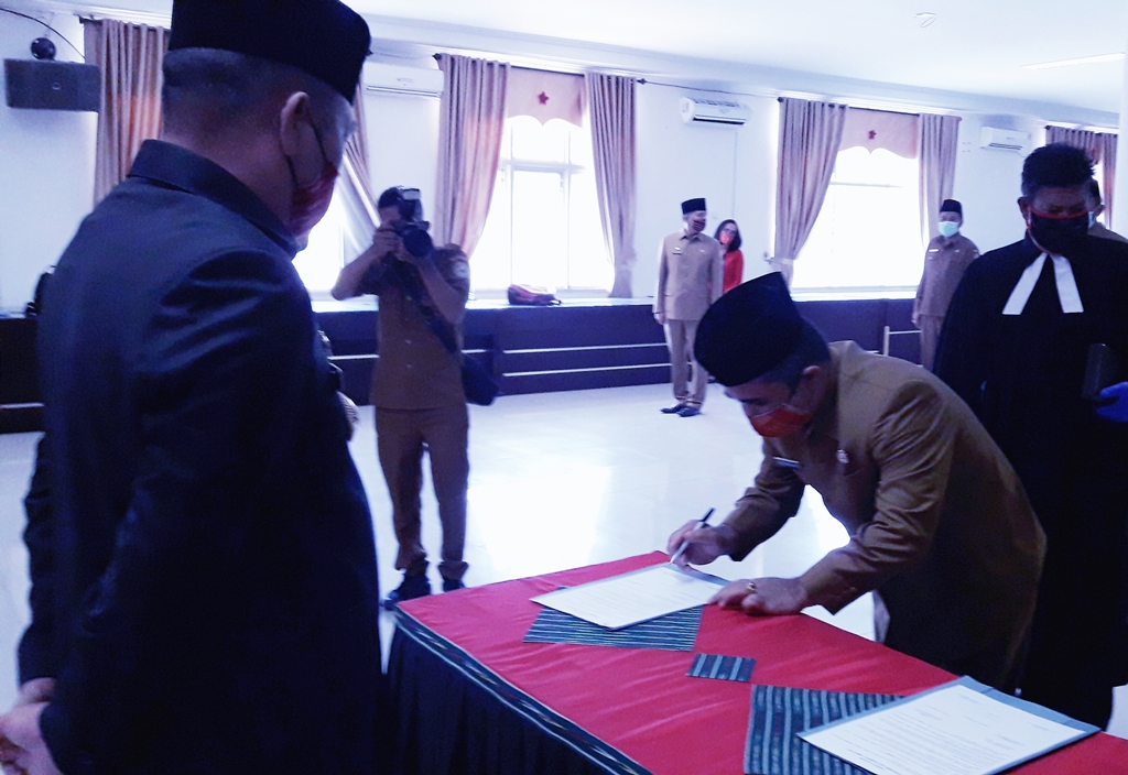 Bupati Taput Nikson Nababan melantik Dalan Nangkok Simanjuntak sebagai Kadis PUPR Taput. PALAPAPOS/Alpon Situmorang