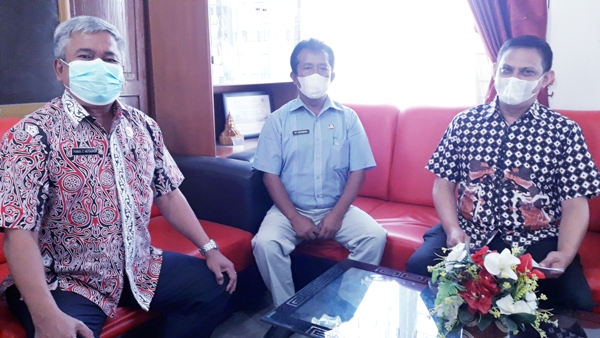 Kadis Pariwisata Taput YC Hutauruk didampingi Kabid Pengembangan Wisata Estomihi Sihombing dan Kabid Destinasi Wisata Jeffry Sinaga saat ditemui di ruang kerjanya. PALAPA POS/Alpon Situmorang